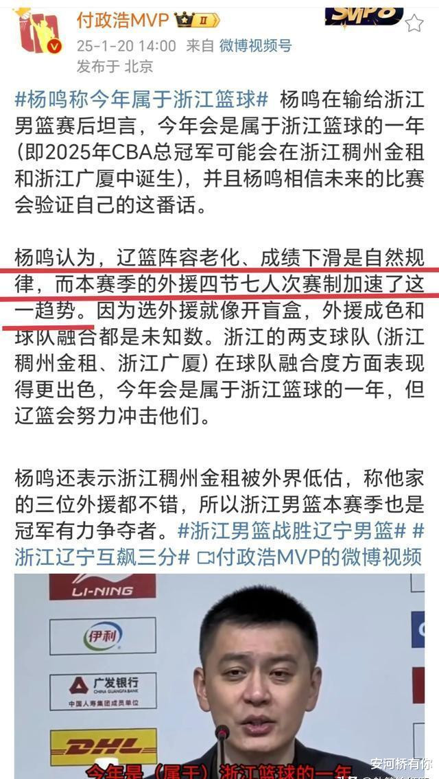 辽篮主教练杨鸣于赛后发布会亲自承认,辽篮阵容存在老化现象,成绩下滑属于自然规律,而本赛季的外援四节七人次赛制加速了这种趋势的发展。